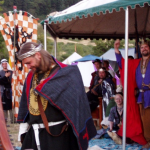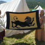 Tradition saying it was started over the correct texture of chocolate chip cookies (chewy or crunchy), this war has its earliest roots as the Shasta Punitive Raid in AS 11 (August ‘76) where “sides were chosen [&] An Tir emerged victorious, thus forcing the Kingdom to keep Shasta.” The following year on the now-traditional weekend, the 2nd Annual Shasta Counter-Invasion was held, calling mercenaries to “HELP SUPPORT–or oppose–THE MANIFEST DESTINY OF AN TIR.” Next year’s was called the Golden Rivers and Lion’s Gate War. Though Kingdom history records no war in ’79, it returned in ’80 and again in ‘83 as the Lionsgate-Westermark War before again laying fallow again for a year. It returned in its current form in 1985 as West-AnTir / AnTir-West War. After drifting from battlefield to battlefield for decades, it found a home in Gold Beach in 2007 and remains there to this day.
