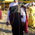 Duke Sir Thorfin wearing the AS 42 An Tir/West War Hero’s Cloak Duke Sir Thorfin wearing the AS 42 An Tir/West War Hero’s Cloak - AS 43: Bestowed upon Duke Sir Tiernan by King Titus and Queen Eilis of The West. Creation led by Catherine Lorraine.